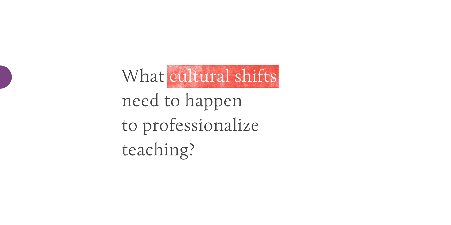 What does it look like to change the cultural expectations around teachers? What is reasonable to expect teachers to be able to do and what outside school issues need to be addressed in other areas of the community?